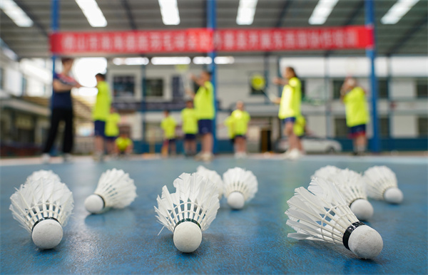 7月26日,在貴州省黔東南苗族侗族自治州丹寨縣城關第一小學暑期羽毛球免費培訓課上,孩子們在進行羽毛球對抗賽。
