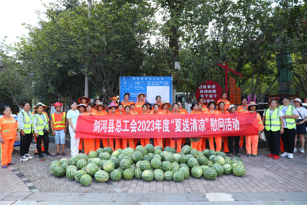 炎炎夏日送清涼,絲絲關愛傳真情。近日,劍河縣總工會聯合縣委組織部、團縣委等部門深入快遞公司、供電局、戶外勞動者綜合服務站集中開展“夏送清涼”慰問活動,為奮戰在高溫、露天環境工作的快遞員、環衛工人、供電搶修員等400多名一線職工和戶外勞動者送去水,西瓜,防暑降溫禮包等夏日“清涼”物資,關愛,關心一線職工。