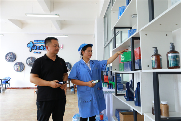 在劍河屯州工業園區的一家大健康日用品生産企業裏,工人們正在分工協作,忙着産品加工、線上接單、打包、發貨,一派繁忙。最近,該公司生産的一款溫泉藥浴産品,在線上平台十分走俏,源源不斷的訂單量讓工人應接不暇。