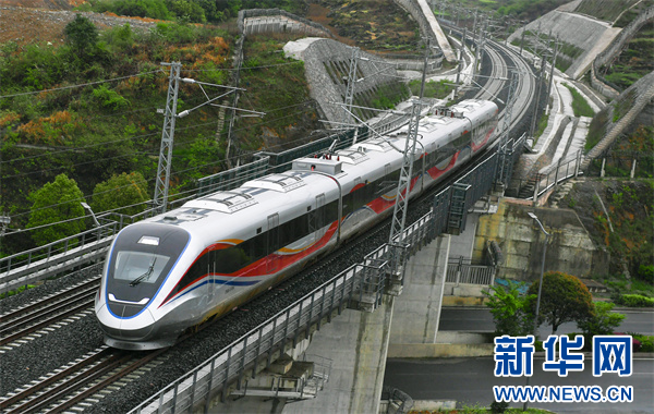 動車組列車行駛在貴陽環線鐵路天河潭一號橋上(資料照片)。新華社發(鄧剛攝)