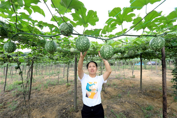 “除草、施肥、打瓜,只要願意做,平均下來一個月有近3000元的收入。”三星村村民嚴守能高興地説,土地租給老闆,又返聘到基地來務工,離家近不説,還有兩份收入。