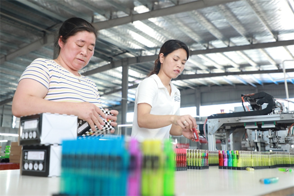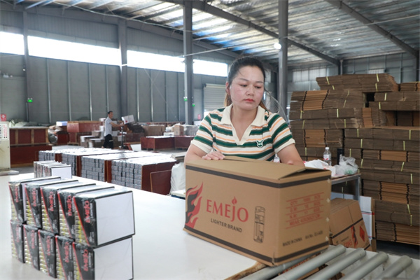 岑鞏經濟開發區打火機産業園,工人在生産打火機。(沈婷 攝)