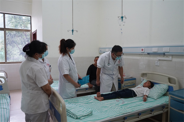 在岑鞏縣天馬鎮中心衞生院,來自縣人民醫院的駐點幫扶醫生在查房。(朱勝攀 攝)
