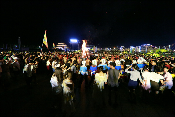 白天感受多彩民族風情,夜晚共享全民聯歡。平塘縣各鄉(鎮、街道)帶來的充滿民族韻味的表演,將現場觀眾帶入到龍騰舞秀民族大聯歡中。隨着場外篝火熊熊燃燒,伴隨歡快的旋律,大家手拉着手唱啊跳啊,沉浸在歡樂的海洋。