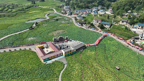 岑鞏縣客樓鎮下寨荷花基地航拍。(吳國明 攝)