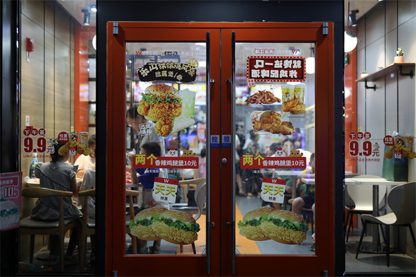 8月11日,游客在貴州省黔東南苗族侗族自治州丹寨縣萬達小鎮休閒街區一家漢堡店內消費。