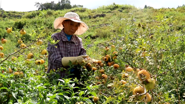 “今年的刺梨結得厚、結得密,這兩天天氣好,我們要抓緊採刺梨,我覺得種刺梨産量比較高,種玉米都沒有這個好。”村民林朝燕説。