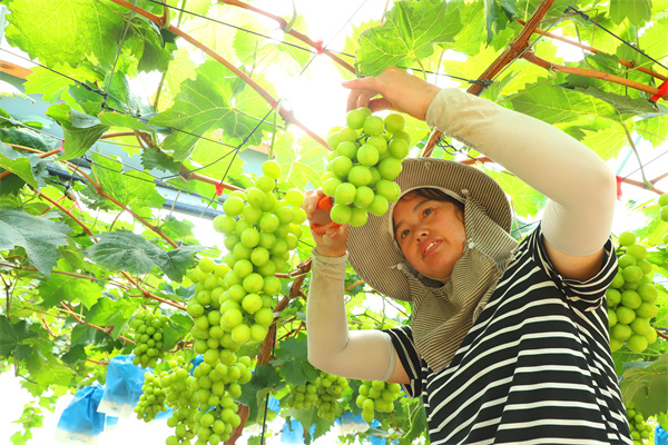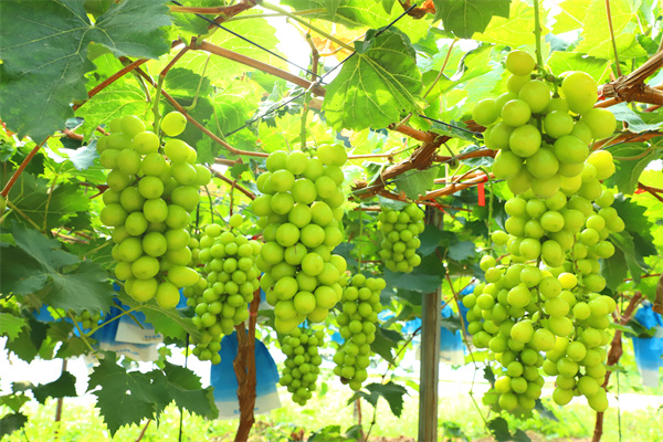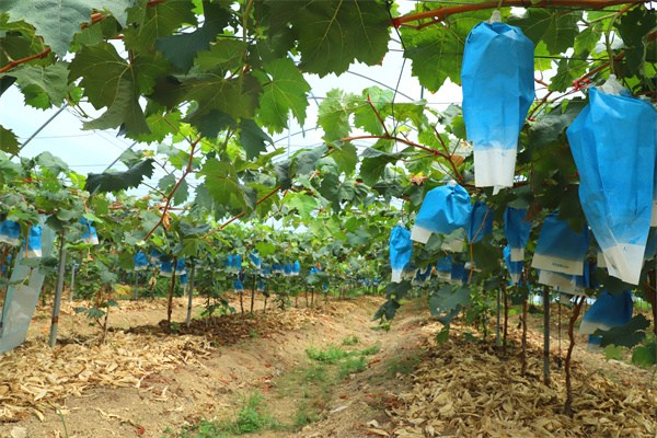 陽光玫瑰鮮脆多汁、香味十足,是現在市場上受歡迎且價格高的葡萄品種。因看中陽光玫瑰發展前景,2022年3月,王興成在當地政府的協調支持下,在周覃鎮農業園區發展種植陽光玫瑰。為提高葡萄産量和品質,基地就地採用廢棄的菌棒、牛糞等有機肥料進行土壤改良。