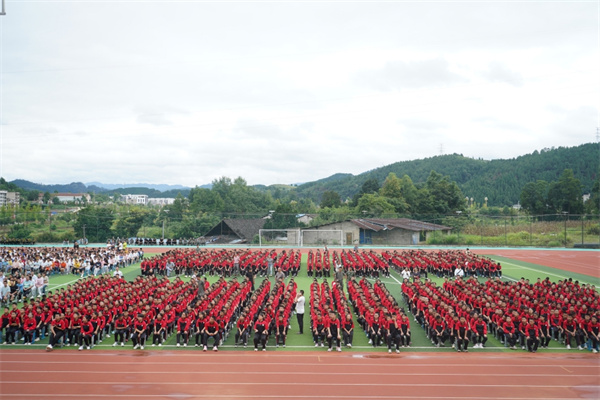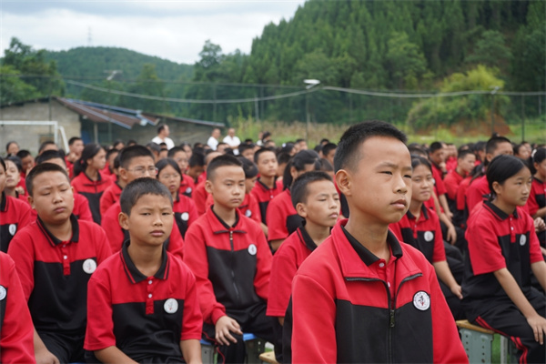 岑鞏縣第四中學,學生在操場聆聽法治宣傳教育宣講。(何小雨 攝)