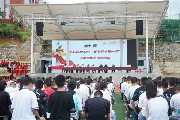 為進一步增強青少年法治意識,營造安全的校園環境,8月28日,岑鞏縣委政法委聯合縣法院、縣檢察院、縣教科局、縣司法局、縣公安局及縣禁毒辦在岑鞏縣第四中學開展“開學第一課”校園法治宣傳教育活動。