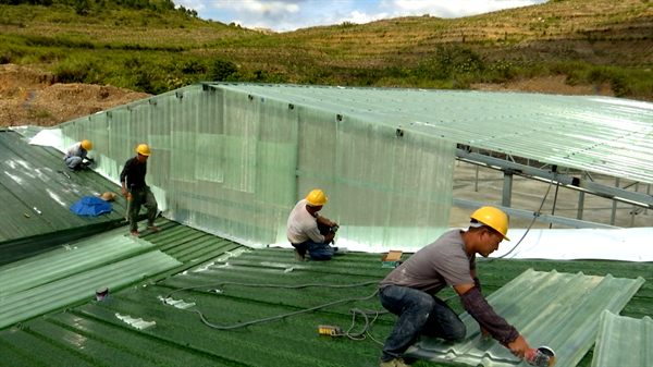 在項目建設現場,工人們有的在對設備進行安檢、調試,有的在安裝雨棚。