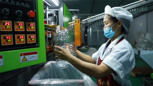 千里苗疆農業開發有限公司自2019年落戶丹寨以來,以製作紅酸、白酸為主基調的同時,根據市場需求,不斷創新生産出了20多款辣椒調味品,深受市場追捧。今年,為實現供需雙豐收,企業年初將生産線進行了更新換代,從制瓶到裝灌、套標等,全生産線實現了自動化生産。貴州千里苗疆農業開發有限公司生産總監楊啟錫介紹説:“我們上了一台全自動的吹瓶機,生産效率比以前提高了60%。再一個我們産品生産線人工操作的地方,現在我們全部改成了全自動的生産線,生産效益顯著提高,也逐漸滿足了客戶訂單不斷提高的要求、需求。”