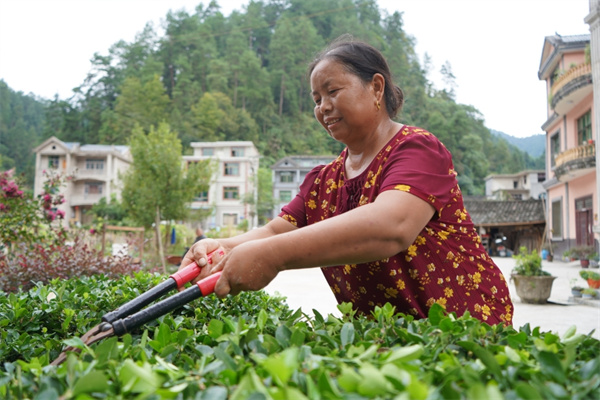 “院子裏除了種有茄子和辣椒,還種有紫薇、吊蘭、紅繼木和萬年青等。”除草、澆水、剪枝......儘管農活繁重,但陶英總是擠出時間,把院子打理得漂漂亮亮。“寨子上家家戶戶房前屋後都搞得漂亮,我也不能拖後腿啊。”陶英説。