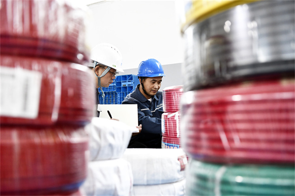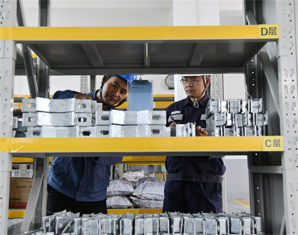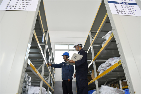 9月13日,在貴州省黔東南苗族侗族自治州黎平縣德鳳街道,南方電網黎平供電局物流服務中心工作人員開展物資梳理和檢查。(林世禎 攝)