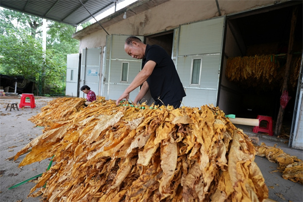 “現在我年紀大了,出去找事做也困難。幸好我們村現在有很多種烤煙的人家,每天在家門口就能把生活費賺了。”在烤煙房做工的村民王香花説。