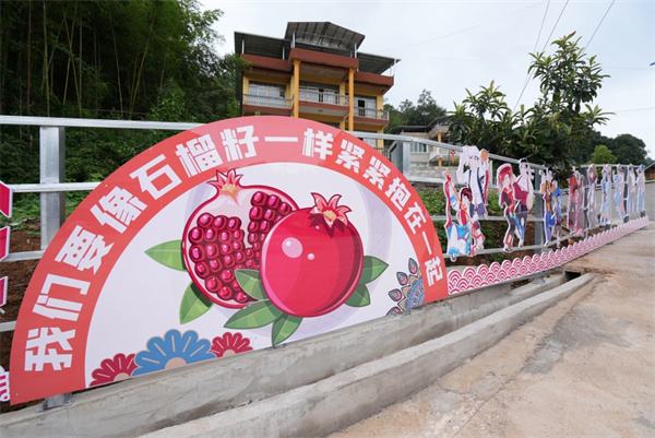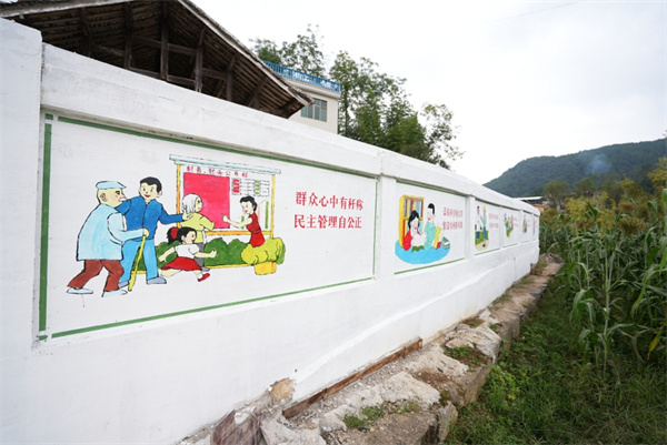 岑鞏縣羊橋土家族鄉坪地村文化墻。(沈婷攝)
