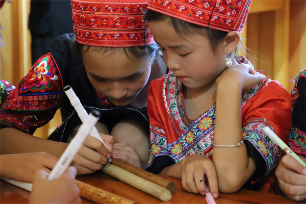 鄉土文化“添”光彩。美麗鄉村既要留得住綠水青山,也要係得住鄉愁。楊柳塘鎮的苗族群眾素來都有以歌會友、以歌為媒、以歌喻理的習俗,其中代表性的“刻道”文化於2006年列入首批國家級非物質文化遺産,歷經兩代代表性傳承人,是地道的本土文化。為更好地保護與傳承,經鎮黨委推動,屯上村刻道文化館經常利用開學季、節慶日開展非遺“刻道”文化進校園、進村寨園活動,同時通過將非遺與暑假相結合,以刻道文化展示館為依託,積極開設暑假免費公益的蘆笙歌舞、刻道棒製作、板凳舞、唱刻道古歌等非遺培訓課程,已經持續開展4期培訓班,每期超過20課時,超600人次參與培訓。讓青少年們在豐富多彩的假期活動中,感受非遺文化的獨特魅力,在走進非遺、了解非遺、學習非遺中不斷增強對非物質文化遺産的保護和傳承意識,讓非遺文化“火起來”,為鄉村振興添光彩。(楊青龍)