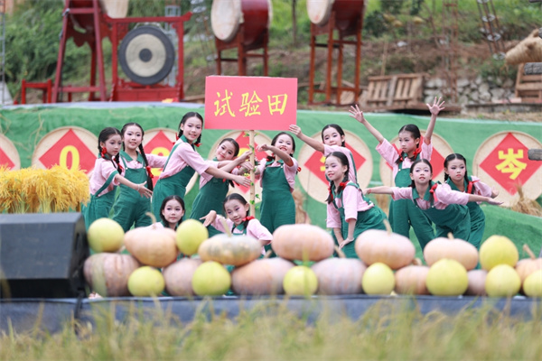 小演員們在表演以豐收為主題的節目。(唐鵬 攝)