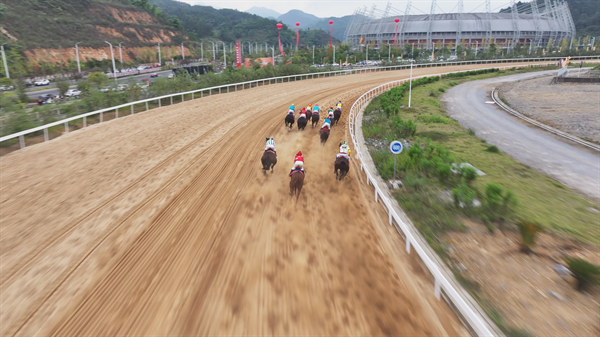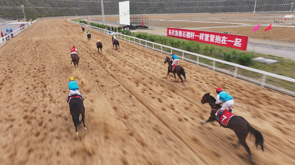 決賽現場,起跑線上的駿馬一字列隊、蓄勢待發,隨着裁判員的一聲令下,馬兒在騎手的駕馭下,疾馳如飛地奔向前方。精彩的賽事贏得觀眾陣陣掌聲。