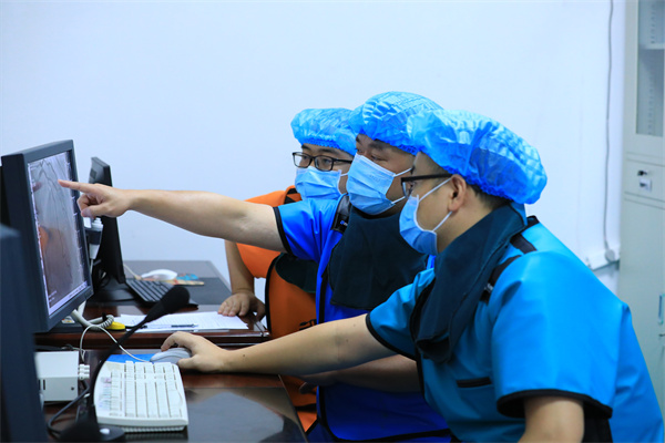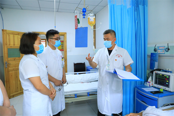 順德醫療幫扶專家楊友(中)與其帶教的醫生交流。(吳玲 攝)