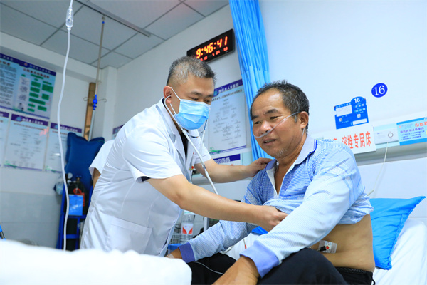 順德醫療幫扶專家楊友(左)在查看病人情況。(吳玲 攝)