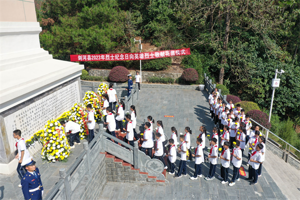 先烈精神千秋頌,英雄浩氣萬古存。貴州省劍河縣革命烈士陵園內,青松翠柏挺拔蒼勁,革命烈士紀念碑巍然高聳。為紀念緬懷英雄烈士,傳承和弘揚英雄烈士精神,厚植家國情懷。9月30日上午,劍河縣舉行烈士紀念日活動,組織幹部群眾向英雄烈士敬獻花籃。