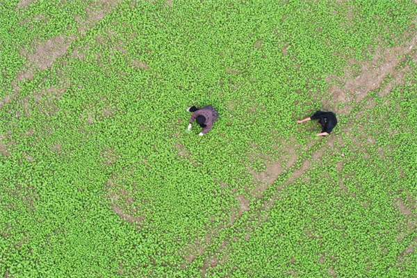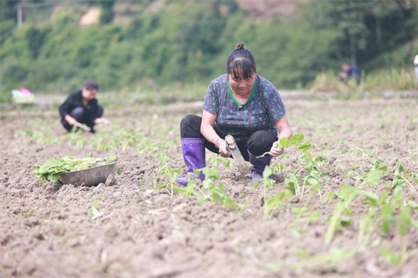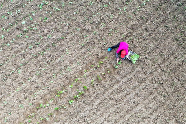 岑鞏縣農田鎮總院村,村民在油菜育苗基地起苗。(唐鵬 攝)