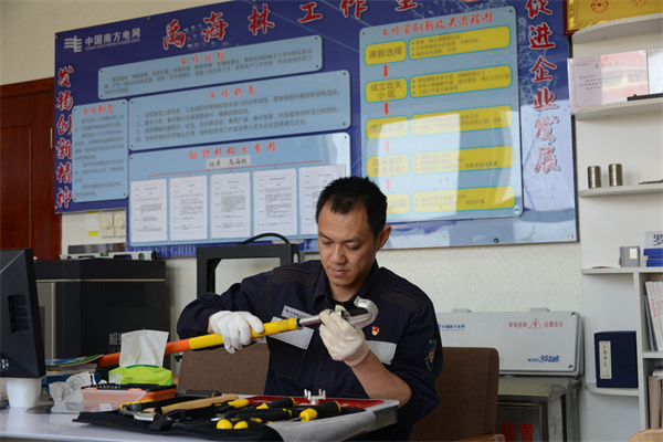 禹海林是個愛“鼓搗”的人,工作中的技術問題,是他樂於較勁的對手。作為惠水供電局“禹海林勞模工作室”負責人,禹海林發動各崗位掀起創新熱潮,結出纍纍碩果。截至目前,獲得國家專利授權14項、各級表彰六十余項,工作室被評為“貴州省勞模和工匠人才創新工作室”“貴州省省級青年文明號”“南方電網青年文明號”“貴州電網安全生産特殊貢獻團隊”等榮譽表彰,團隊連續4年評為貴州電網“優秀創新工作室”。