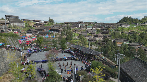近日,三都縣普安鎮高硐村野記苗寨迎來了一年一度的“吃新節”,這一天十里八鄉的各族群眾歡聚一堂,開展跳月、蘆笙舞比賽、鬥牛等豐富多彩的民俗活動,共慶佳節。