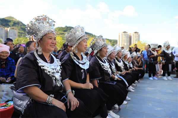 下午兩點,精彩的文藝匯演在舞蹈《心手相連》中拉開帷幕。演員們舞姿優美、技藝精湛,贏得了現場觀眾的熱烈掌聲。而社區居民們也毫不遜色,他們用自己擅長的民族歌舞,歡慶重陽節,歌頌黨的恩情。苗族飛歌《飛歌聲聲獻給黨》、侗族民歌《黨的政策真是好》、舞蹈《這裡也是你的家》、山歌《劍河新變化》等充滿民族特色的節目,表達了搬遷群眾對黨的感恩和對新時代的讚美。這些節目不僅展現了幸福社區越來越完善的建設和貼心的服務,還展示了“樓上安居、樓下樂業”的美好生活,讓搬遷群眾對新生活充滿了信心。