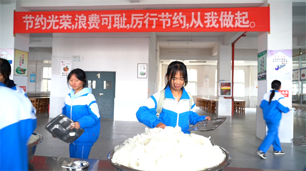 “我們學校專門設立了‘光盤行動’監督崗,我們的學生志願者他們會在崗監督學生就餐,還有我們的老師他們會每天在食堂巡視學生用餐,如果説發現學生用餐時候有浪費現象,那麼我們的老師還有志願者他們會立即上前去制止學生,提醒他們合理用餐,從而杜絕浪費現象。”丹寨縣第二中學教師張露介紹着學校食堂用餐的日常情況。