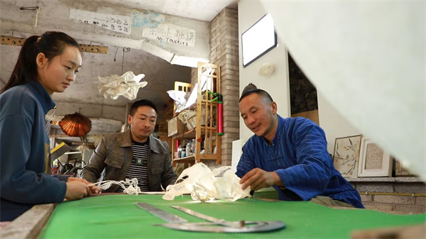 順應形勢,創新求變。如果説傳承人王興武在産業發展方式上轉變,那同樣作為國家級皮紙技藝傳承人潘玉華則是在文創産品上做到了精益求精。經過外出考察、潛心研究,幾經打磨後,他在傳統皮紙的基礎上不斷推陳出,創制了各類紙燈、紙畫等極具藝術感的文創産品,讓古老的文化收穫現代密碼,備受游客青睞。國家級非物質文化遺産項目皮紙製作技藝代表性傳承人、省級工藝美術大師潘玉華説:“如果你沒有新東西介入,不去加以設計,不去加以改變,古法造紙紙張在我們這一輩就會消亡了,後續就沒有了。從産業發展上來講的話,古法造紙這種皮紙産品,其實已經不適應當下這種高速發展的社會。”北京游客韓雨激動地説:“以前根本就不知道傳統的造紙它可以把思維發散成這樣,然後它能出現這麼多的藝術形式,也能出現不管是實用的也好,實驗的也好,就是這些藝術形式我覺得真的是讓我很震撼的。”