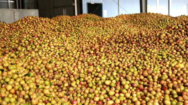 “目前我們這裡1300畝摘果半個月了,目前有60萬斤了,摘完應該100來萬斤是有的。茶果採摘完了之後,所有的茶果都拿去加工廠那裏,經過很多道工序以後榨出精煉油,然後就可以包裝上市了。”安錫分説。