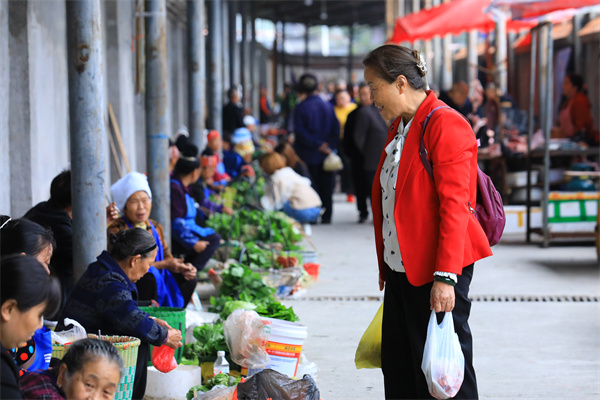 “現在有了固定攤位,又有遮擋棚,晴天不怕曬、雨天不怕濕,我們經營穩定,收入也穩定了。”搬進新農貿市場後,70多歲的攤販楊琴蘭夫妻倆,也順利找到了合適的攤位,售賣自家出産的蔬菜、紅薯等農副産品。以前沒有攤位,老倆口挑着扁擔,到處找位置。有了固定攤位後,客流量大了,老倆口每天都能正常出攤售賣,補貼家用。