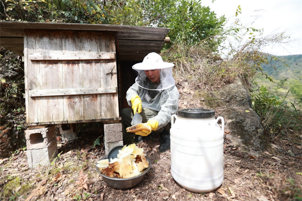 “蜂箱的位置擺放選得好,收來的蜂也就多。蜂箱的位置擺放不一樣,蜂蜜的色澤和産量也會有一定區別。”養殖戶陳志敏説,把蜂箱的位置擺放好,平時只要做好蜜蜂養殖中的常見病害防治工作,讓蜜蜂在自然狀態下採蜜,産出的蜂蜜會更加香甜。