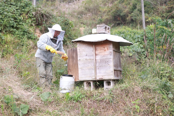 深秋時節,是蜂蜜采收的高峰期。每天往返於蜂箱之間采收蜂蜜是陳志敏的日常工作。
