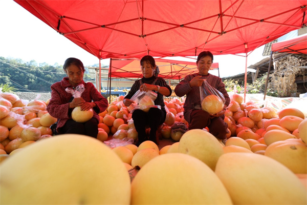 貴州省岑鞏縣注溪鎮周坪村,村民在包裝柚子。(李昌焯 攝)