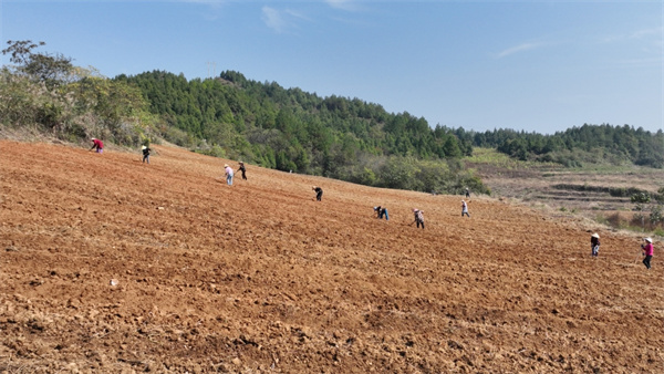據貴州匯隆農業有限公司技術員代國權介紹,趁着當前的晴好天氣,黃精基地的土地整理工作正緊張有序進行中。目前已完成整體進度的70%,預計未來一週可全面完成。迎來降雨之後,基地將開展黃精種苗的播種工作。