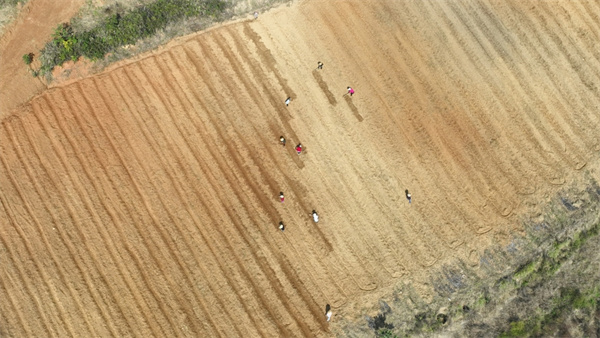 岑鞏縣平莊鎮後坪村走馬坪中藥材基地,村民在開展黃精播種前的準備工作。(吳國明 攝)
