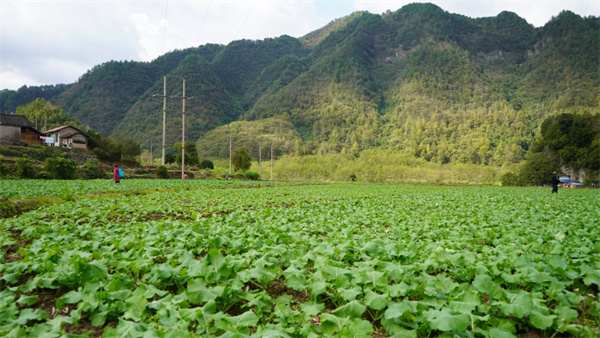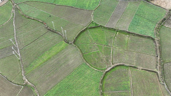 村民們正忙碌在田間地頭,給油菜進行精心管護。(吳念 攝)