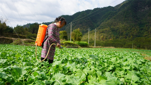 “今年種了7畝地,油菜種下去,雨停了我們就來施肥,盼望來年有個好收成。”種植戶朱明志説。