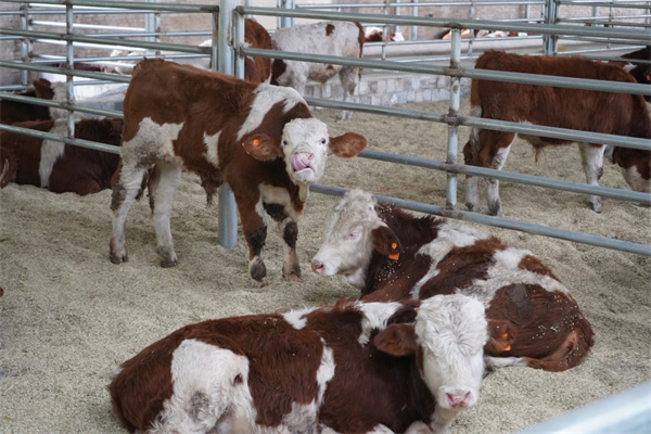 新採購的西門塔爾犢牛。(吳念 攝)
