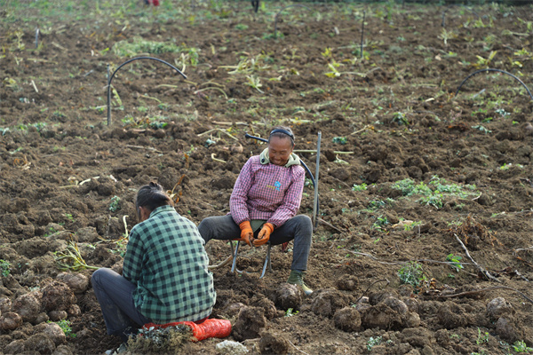 圖為群眾正在清理魔芋上的泥土