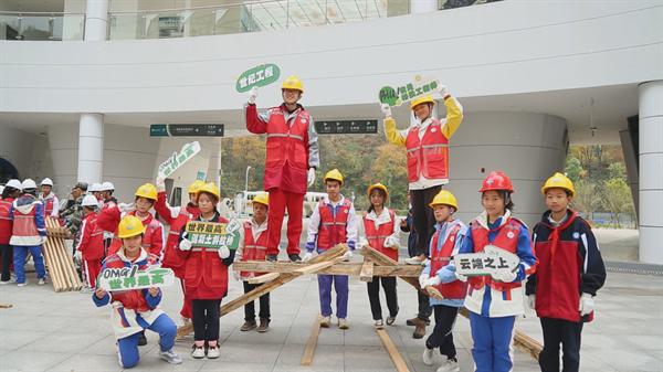 在了解貴州橋梁的發展歷程後,學生們開展了橋梁搭建實踐,進行橋梁工程師職業體驗,用木條來嘗試拱橋搭建,在動手過程中思考力與橋梁的作用,感受橋梁工程師的工匠精神。