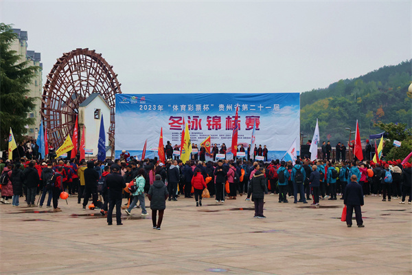 12月2日,2023年“體育彩票杯”貴州省第二十一屆冬泳錦標賽在施秉開賽,來自全省27支隊伍500余名不同年齡段的冬泳愛好者齊聚縣城舞陽河水域,在碧波之中點燃激情寒冬,上演精彩紛呈的水上角逐大戰。隨着一聲發令槍響,選手們紛紛魚躍入水,前赴後繼、劈波斬浪、衝破身體極限,在賽道中盡展游泳技能;兩岸觀眾吶喊助威,歡呼聲此起彼伏、高潮迭起,氣氛十分熱烈。