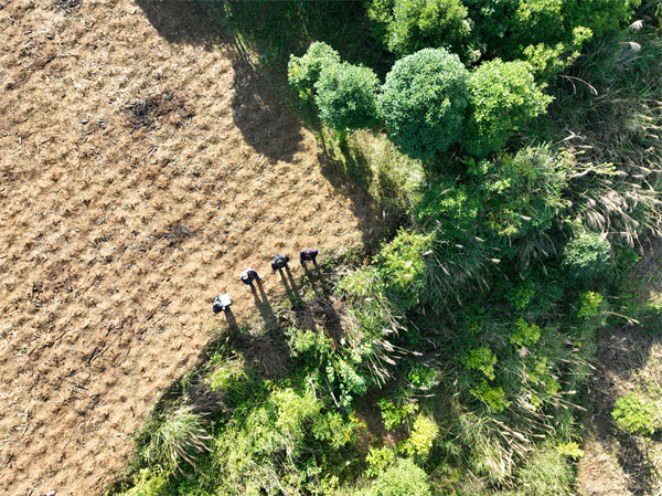 前些日子,這片帶着豐收喜悅的土地,還是兩家矛盾的導火索。今年4月,太平營街道專職人民調解員龍通元接到村民反映的矛盾線索後,第一時間趕到兩家的土地糾紛現場,“土地水溝界線18.4米,寬為右邊0.4米……”龍通元和同事們現場測量,手繪邊界示意圖,擼起袖子一鏟一鏟地將垮塌的土坎修復,清理出兩家清晰的土地界線,將這場可能引發鄰里矛盾糾紛事件現場化解。