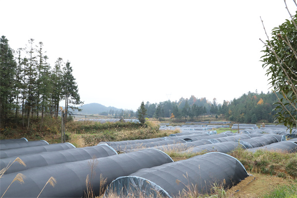 走進周覃鎮羊肚菌種植基地,一個個黑色大棚整齊排列、錯落有致,場面十分壯觀。