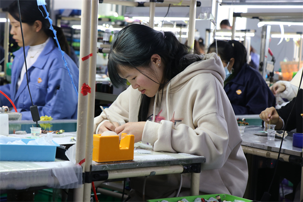 近日,走進畢節明月工藝美術有限公司的組裝車間,工人們正忙着零部件組裝,蕭春雨也是其中一員,作為新員工,她正認真地邊學邊做,忙得不亦樂乎。