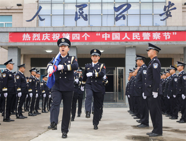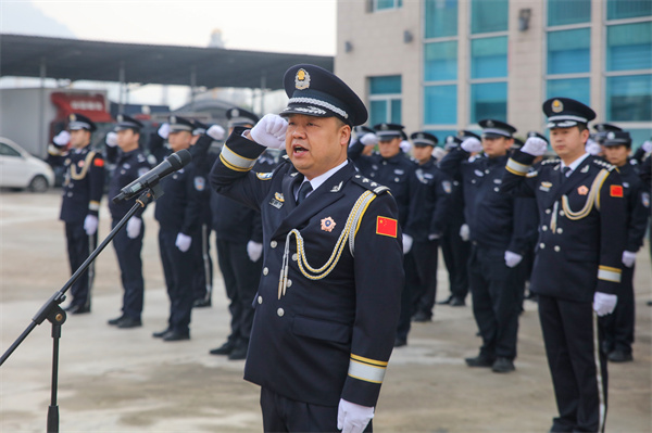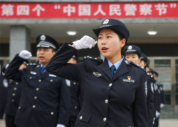 1月10日,貴州省黔東南苗族侗族自治州施秉縣公安局民警舉行升警旗儀式。