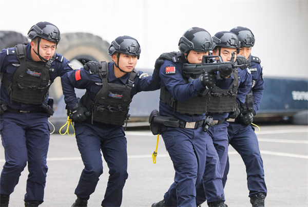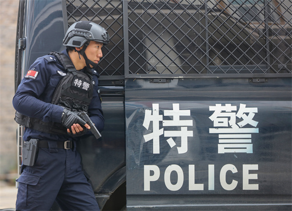 1月10日,貴州省黔東南苗族侗族自治州施秉縣公安特巡警進行警務實戰匯演。(磨桂賓 攝)